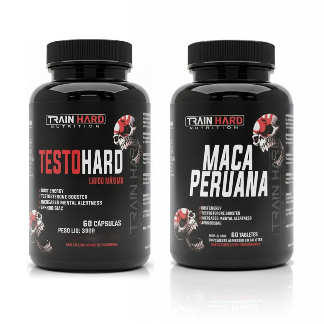 Se você busca reverter a fadiga, aumentar significativamente a libido e garantir que seus níveis hormonais estejam perfeitamente otimizados para o máximo vigor e performance, este combo da Train Hard Nutrition é a solução definitiva. A união da Maca Peruana com o Testo Hard cria uma sinergia poderosa.