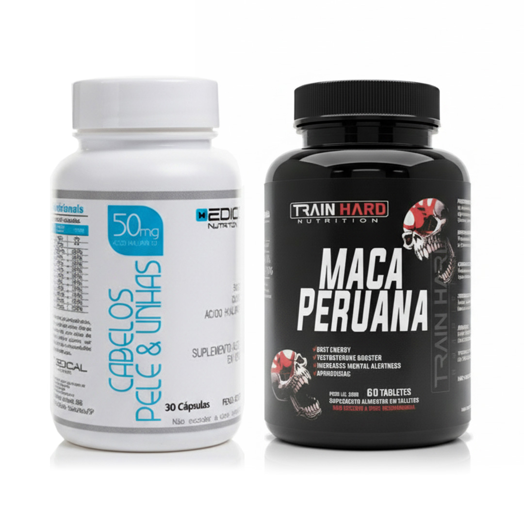 O segredo para uma beleza que irradia começa de dentro. O Combo Cabelo, Pele e Unhas Colágeno (Medical Nutrition) + Maca Peruana (Train Hard Nutrition) é a dupla essencial para a mulher que busca realçar sua beleza estética e, ao mesmo tempo, elevar sua energia e bem-estar geral. Este é o suporte completo para você se sentir forte, vibrante e linda.