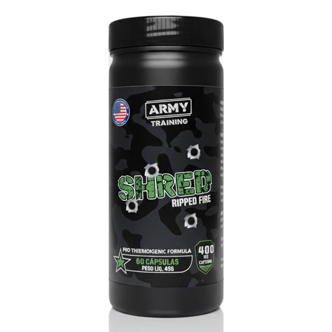 Chegou o momento de levar sua definição a um nível militar. O Shred Ripped Fire da Army Training é um suplemento termogênico formulado para transformar seu corpo em uma máquina de queimar gordura. Com ingredientes de alta potência, ele oferece a energia, o foco e a aceleração metabólica necessários para resultados visíveis e rápidos.